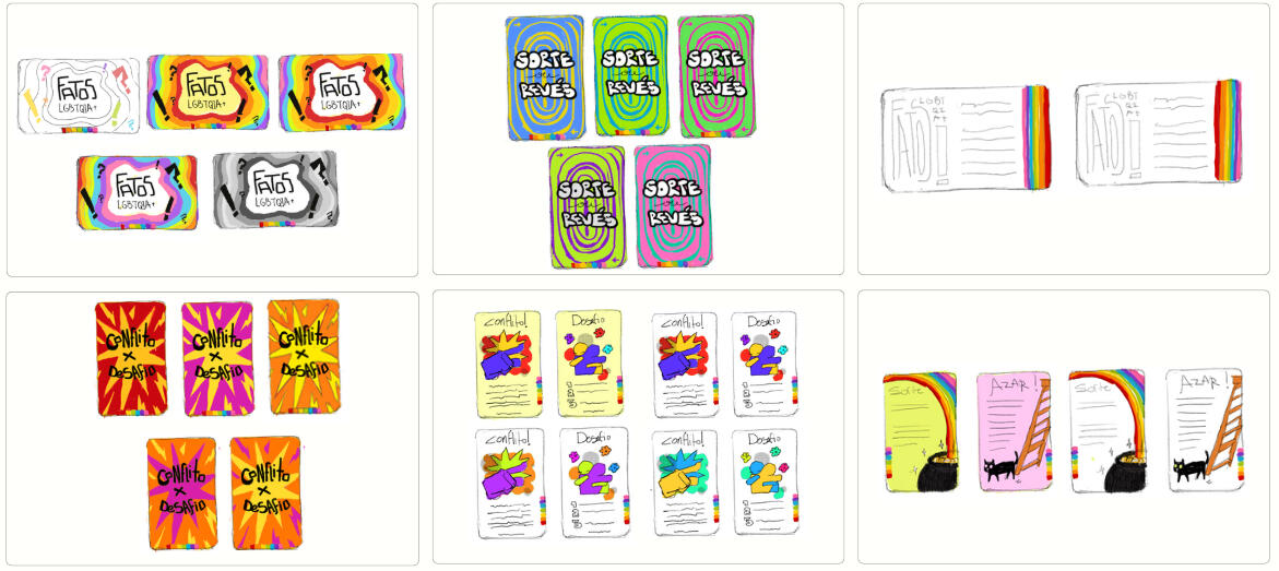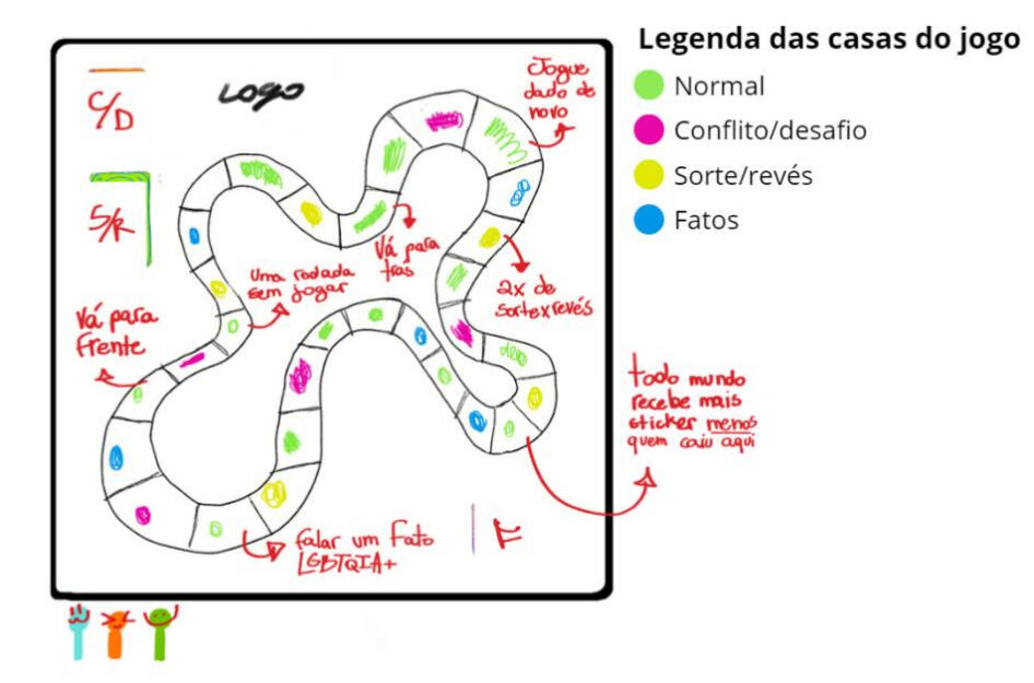 Prototyping & Testing:ㅤ• Developed prototypes using tools like Brainwriting and Function Analysis to refine mechanicsㅤ• Created three card decks: Conflito/Desafio (conflict resolution), Fatos LGBTQIA+ (trivia), and Sorte/Revés (chance events)ㅤ• Tested usability with a provisional board, adjusting house rules and card layouts based on feedback